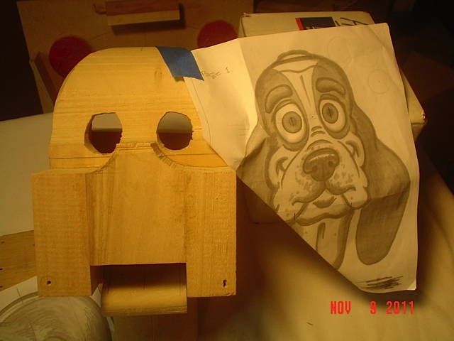 The large size dog “snout” required many layers of bass wood. These pictures were taken by Brant in his workshop area.